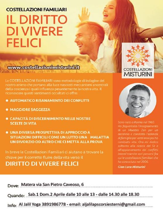 Il mio destino é stato quello di incontrare persone che mi hanno accompagnato dentro alle costellazioni familiari e quindi ritrovarmi più felice di essere me stesso e se voi state leggendo queste righe, forse é perché quella gioia sta già bussando alla porta del vostro destino. Ve lo auguro di cuore e se così fosse, che vi accompagni io o qualcun’ altro non ha importanza; quella gioia, come la margherita, sboccerà sicuramente.