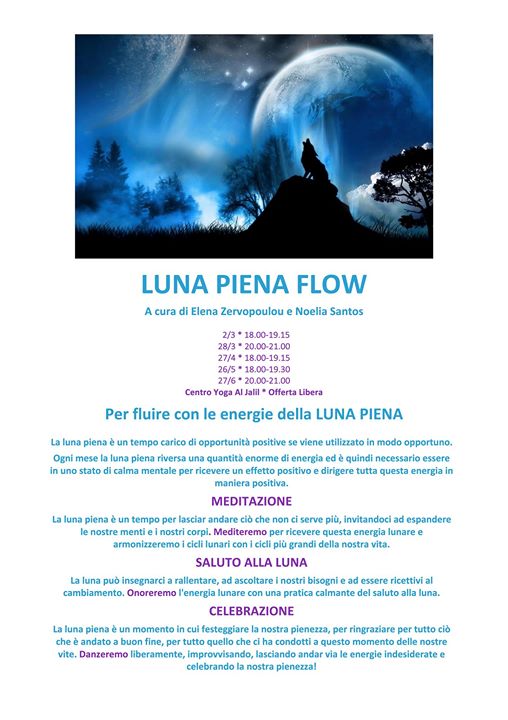 La luna piena è un momento in cui festeggiare la nostra pienezza, per ringraziare per tutto ciò che è andato a buon fine, per tutto quello che ci ha condotti a questo momento delle nostre vite. Danzeremo liberamente, improvvisando, lasciando andar via le energie indesiderate e celebrando la nostra pienezza!