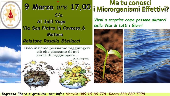 Pomeriggio informativo sulla tecnologia dei Microrganismi Effettivi elaborata dal prof. Teruo Higa, microbiologo, agronomo e docente dell’Università di Okinawa, che permette una vera rivoluzione in parecchi campi applicativi: Tutela dell’ambiente, Agricoltura, frutticoltura, Viticoltura, Benessere della persona e degli animali, Compostaggio, Trattamento delle Acque e nel nostro Ambiente Domestico.